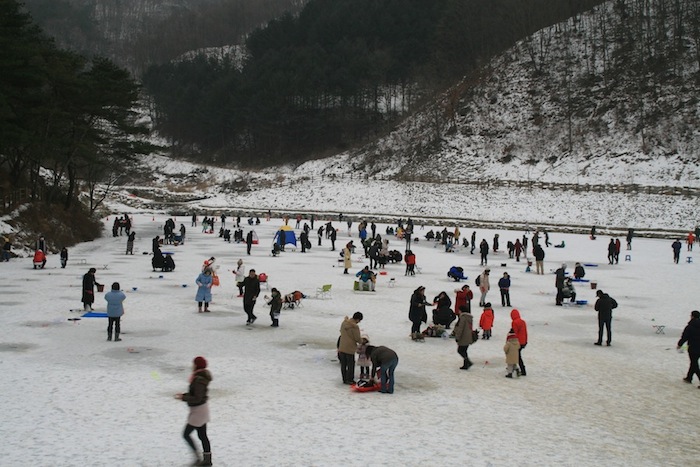 사람들이 많이 모여 평소 주중보다 빙어가 잘 낚이지 않을 수도 있습니다.